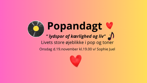 Kom med til en anderledes andagt, hvor tro, tanker og popmusik smelter sammen. Vi vil lytte til de sange, der har sat lyd på kærligheden, håbet, sorgen og glæden. Der bliver tid til til eftertanke, fællesskab og et øjebliks ro midt i den travle hverdag.